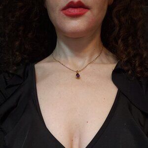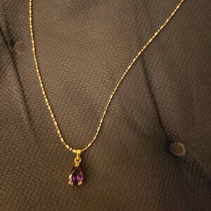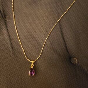 Goldplated Sterling Silver (gold coloured) 16" Necklace with Amethyst Pendant