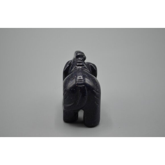 Goldstone Elephant Carving Purple Blue Sparkly Miniature Trunk Up Figurine