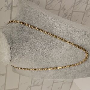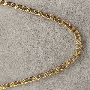 Add this beautiful chain to your next outfit! This intricately designed infinity style goldtone chain features a sturdy foldover clasp and measures: