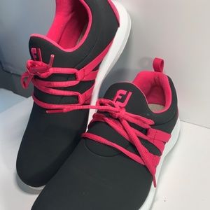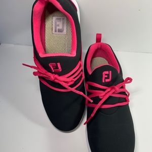 Used in great condition Black and pink Women’s Golf Shoes, slip on, very light and comfortable