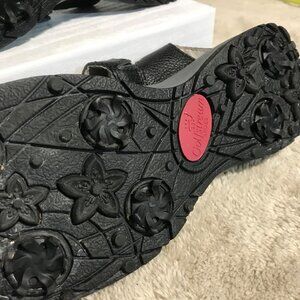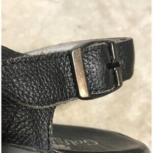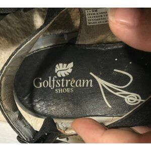 Golfstream Womens Black Leather Strappy Sandals Size 9M With Floral Sole Design