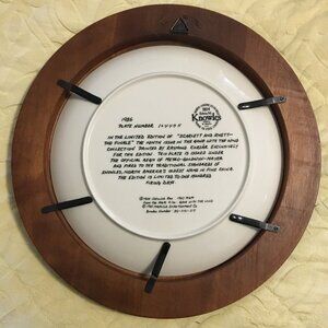 Very good vintage condition, limited edition decorative plate titled 'Scarlett and Rhett - The Finale' featuring an illustration by Raymond Kursar of Rhett being dashing and Scarlett swooning. This is the largest plate in the series and includes a custom size (it might be a little warped as it doesn't seem to be a perfect circle, but the plate rests in it without showing any rim. Some scuffs here and there, but the plate is in great shape. Produced for Edwin Knowles. The ninth plate in this particular series. I have quite a few Gone with the Wind plates that I will post shortly with boxes, certificates and receipts. If there are any in particular you're interested in, please feel free to contact me. Otherwise, they will be uploaded in the next few months or so. Made in 1986.