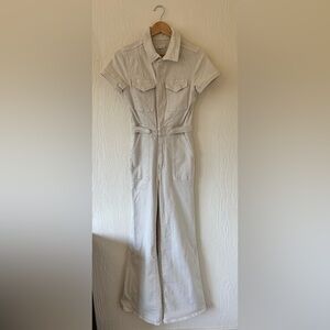 Good American Fit for Success Palazzo Cream Off White Denim Jumpsuit Boiler Suit