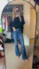 I absolutely LOVE these jeans and get a lot of compliments on them, but I just wish they were longer on me. Button has a bit of fading, but otherwise in great condition! Fabric has nice form fitting adapting forgiving stretch.