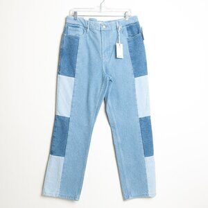 Good American Patchwork Jeans Good Icon Relaxed Straight Ankle Size 14/ US 32