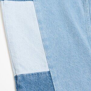 Light wash vintage-inspired patchwork mom jeans.