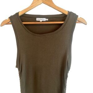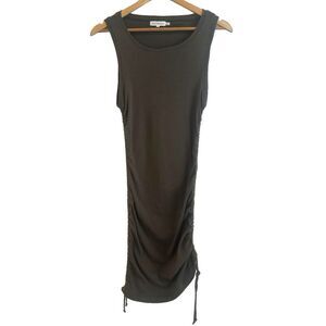 In excellent condition. Good American Ruched Mini Tank Dress in Sea Turtle which is an olive green colour. This sleeveless dress features a round neck with ruched sides and drawstrings to adjust dress length