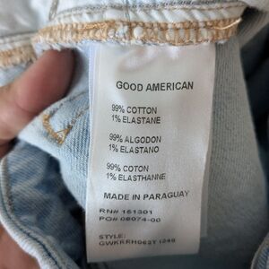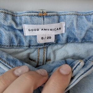 Good American Size 8 high waist raw hem ankle length light denim jeans