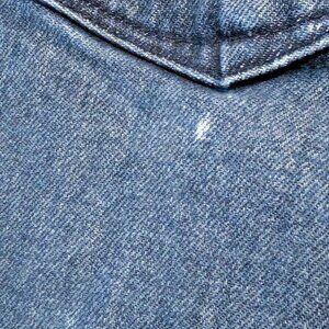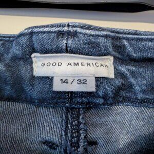 Dark denim, slight acid wash (see close ups, it has some lighter spots that are factory made, not damage)