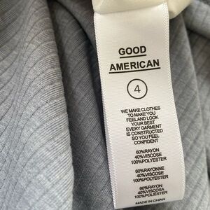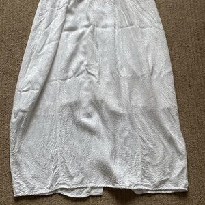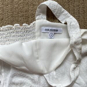 Good American summer midi dress, ivory colour, size 4 in Good American sizing which is different from standard sizing. Please see the measurement (all approximate), it fits like an XL. One of the straps was fixed, please see photos and video of the damage.