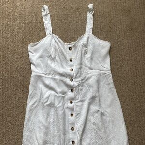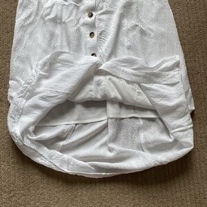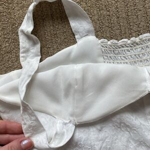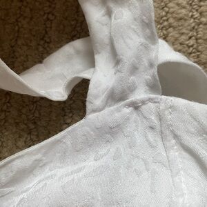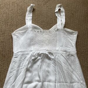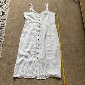 Good American summer midi dress, ivory colour, size 4 in Good American sizing which is different from standard sizing. Please see the measurement (all approximate), it fits like an XL. One of the straps was fixed, please see photos and video of the damage.