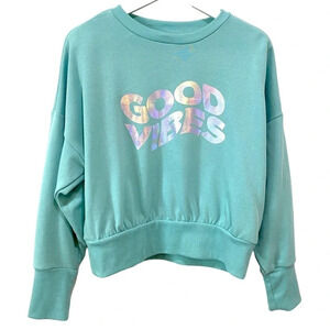 Good Vibes Psychedelic Mint Green Batwing Fleece Cropped Sweatshirt Size M