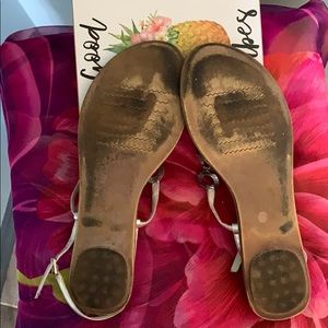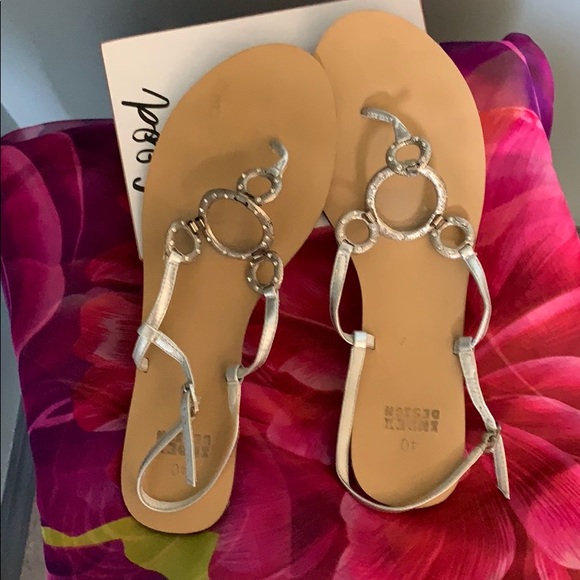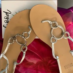 Flat silver sandals in good condition.