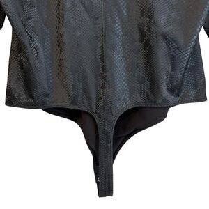 Good American Black Snakeskin Print Faux Leather Long Sleeve Bodysuit