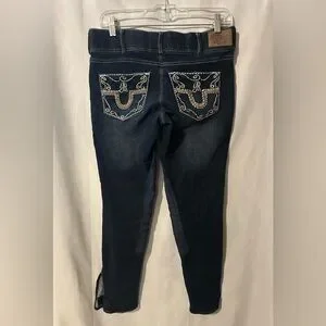 No rips stains or holes, 100% Cotton material. Inner thigh padding for anti chafing and comfortable riding on a horse. Velcro ankle enclosure for the option of a tighter secure or normal fit.