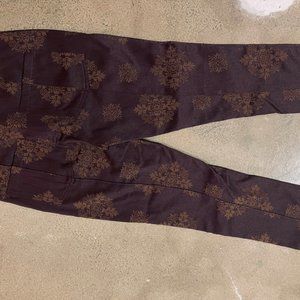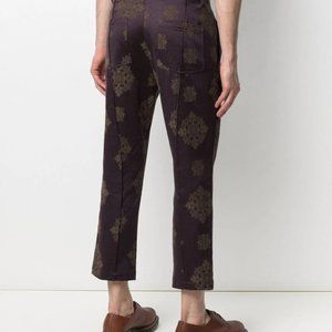 Purple jacquard-print tailored trousers from Goodfight featuring tailored design, patterned jacquard, seam detailing, cropped leg, belt loops, two rear welt pockets and button fly fastening.