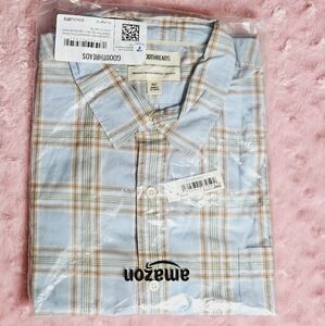 Goodthreads Light Blue Checked Short Sleeved Poplin Shirt Size XL Tall - new with tags, never been worn.