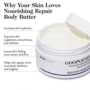 Brand new Goop Beauty GoopGenes Nourishing Repair Body Butter. This buttery-rich cream merges high-performance ingredients with a beautifying ritual for long-lasting, head-to-toe hydration. Crafted with a trio of nourishing butters—bacuri, cupuaçu, and shea—plus nutrient-dense caviar lime, jojoba, and mulberry leaf, the luxurious, citrusy formula replenishes moisture for skin that appears soft, firm, and smooth to the touch.