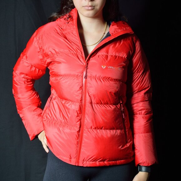 This warm, durable jacket features a nylon taffeta shell with a double-layer lining. It has multiple pockets (inside and front) and an adjustable hood for added comfort. Plus, it easily compresses into small bags or fanny packs, making it ideal for travel and outdoor activities.