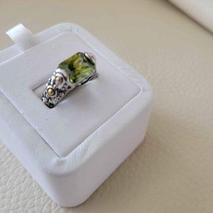 Goregous Balinese style Ring with Baquette cut Olivene Crystal NWT(size 6, 7, 8)