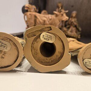 Includes Mary, Joseph, Baby Jesus in Manger, 3 wise men, a seated donkey and camel, an ox, Joshua the musician, Ezra the egg peddlar, Samuel the farmer, Glory Angel and Creche