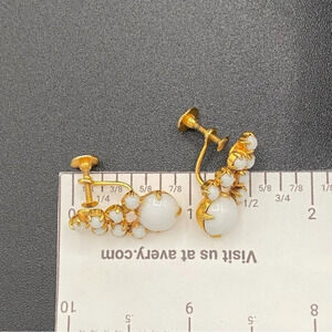 Vintage Milk Glass Set - Necklace and Screw back Prong set Earrings