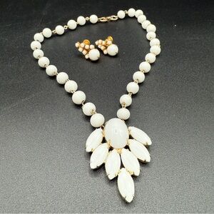 Gorgeous 1940s Milk Glass Prong Set Earrings and Necklace Set