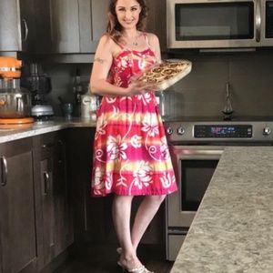Absolutely gorgeous 1960’s beach party dress. This one of a kind Hawaiian print dress is in excellent condition and extremely flattering to the figure with its built in corset. It fits a small to medium as the sides have elastic through them, the elastic is in amazing shape still! Made in Honolulu Hawaii. This dress is an excellent collectors item that will only grow in value if cared for.
