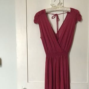 This dress is so special and beautiful. It's a gorgeous wine colour, flowy and soft. Nice details on the back straps, cap sleeves and low cut (but classy) at the front. An amazing dress for a special event. Goes to mid calf, in a classic 20s or 70s silhouette.