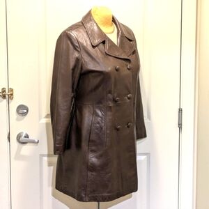 🇨🇦 Gorgeous 70s Trojan 20/XL Brown Leather Trench Coat Made in Canada