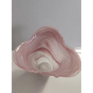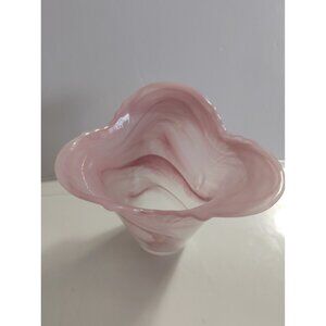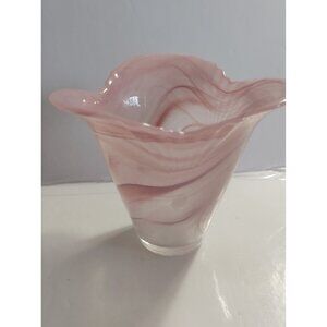 Gorgeous Murano Art Glass Pink white Swirl Vase Scalloped Edge Shell Design 4 1/2" X 5" x 5"