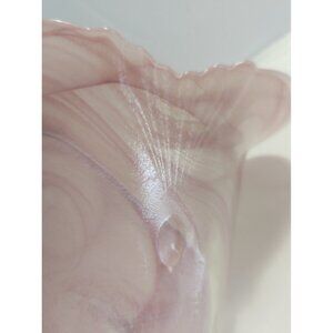 Gorgeous Art Glass Pink white Swirl Vase Scalloped Edge Shell Design 4 1/2" X 5"