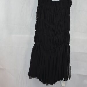 This shawl is folded In half for the photo. It is gathered and looks and feels like a crepe fabric. Great for a cool night. See my little black dresses. A perfect combo for a night out. NWT
