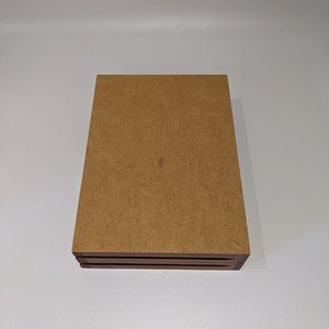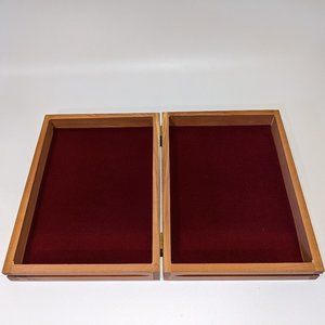 Lovely box with cedar wood edging and lined red interior. Measures 9.75 x 6.75 inches in great condition