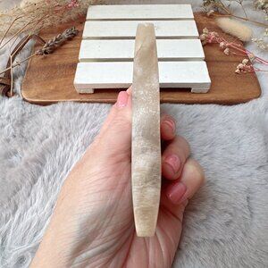 Gorgeous Blue Flash Moonstone Moon Carving with Stand (M1)