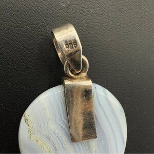 Gorgeous Blue Lace Agate and Marked 925 Silver Teardrop Blue Nature Pendant