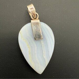 Gorgeous Blue Lace Agate and Marked 925 Silver Teardrop Blue Nature Pendant
