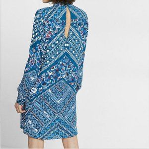 Geometric Floral Print Teardrop Cut-Out Tunic Dress by Express