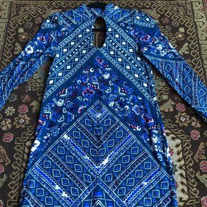 Gorgeous Blue Toned Teardrop Cut-Out Tunic Dress XS-XXS