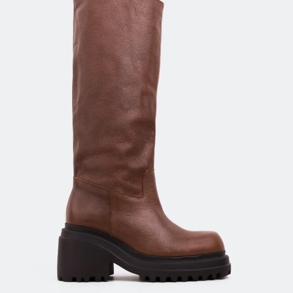 Gorgeous brown/tan, knee-high leather boots. In box, never worn (only selling because wrong size and can't return). Size 9.5/10 (EU 40)