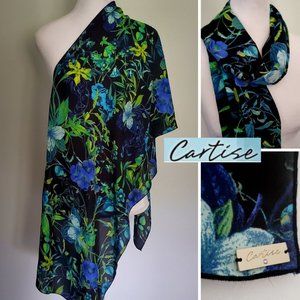 Gorgeous CARTISE Floral Tropical Wrap Scarf Beach Cover Up Cobalt Blue Greens