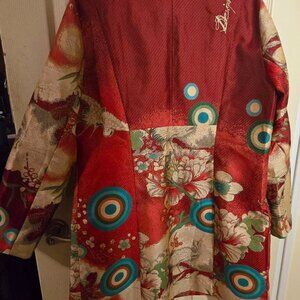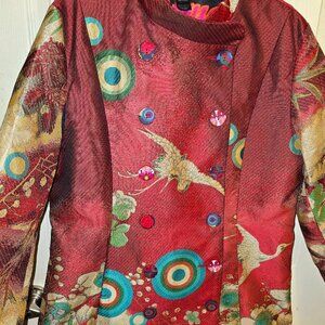 Very unique Desigual dress coat in beautiful burgandy, cream/champagne colours, blues- absolutely stunning on!