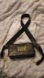 One unique handmade embellished black leather strap with gold tone clips (No brand) with 17" drop