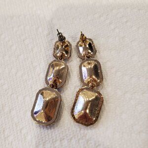 STUNNING GRADUATED 3-TIER DANGLING COCKTAIL EARRINGS * RICH EMERALD GREEN COLOUR * MULTI-FACETED GLASS STONE * GOLD TONE ENCASED MINI STONES BEZEL * GOLD TONE BASE METAL