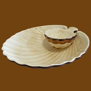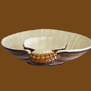 Gorgeous FITZ & FLOYD Chip Dip Bowl. Please view the photos. There is a tiny flaw on the dip part of the bowl as you can see in the photos. It does not detract from the beauty of this bowl.