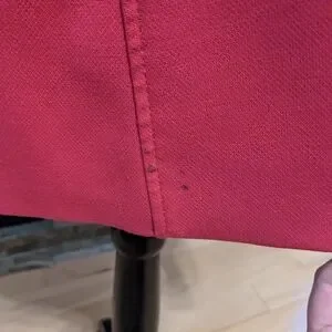This coat is a gorgeous shade of pink which is right on trend for Fall. Prominent stylish collar, tailored with A-line bottom. Adjustable belt. Buttoned front, fully line. Great used condition.
