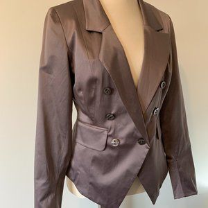 Ladies gorgeous fitted blazer, size 38 or medium. Brand is No Excuse Colour is a shiny taupe, very soft material and has shoulder pads. In excellent used condition, smoke free home.