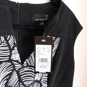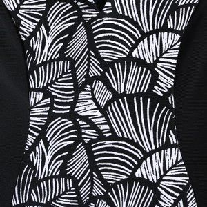 So stunning and flattering! This black dress has a black and white leaf print inlay with v neck detail. Solid, heavier material makes it extra flattering over your curves.