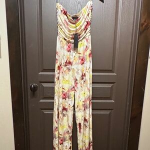 🌺🍹☀️ Gorgeous Floral JUMPSUIT sz. LARGE wide leg, strapless