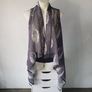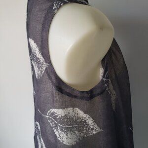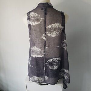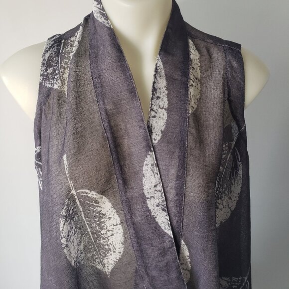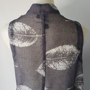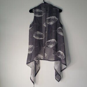 Gorgeous Grey + White Screen Printed Leaf on Linen Look Woven Fabric Vest